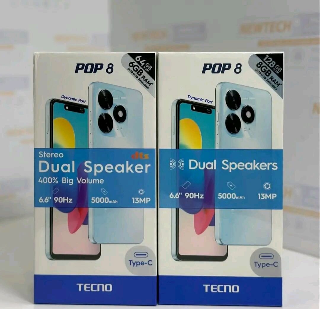 TECNO POP 8 128GB 8GB RAM Nouveau dans carton scellé Disponible
