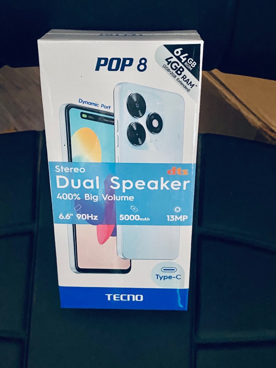 Introducing the Tecno Pop 8: With 64GB of internal storage and 4GB RAM for seamless performance, a vibrant 6.6-inch screen for immersive viewing, and a high-quality 13MP camera for capturing stunning photos, this device is designed to impress. Powered by a robust 5000mAh battery, the Tecno Pop 8 ensures long-lasting usage and exceptional visuals.