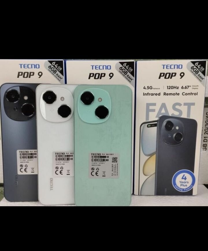 Découvrez le TECNO POP 9, un smartphone 4G rapide et performant. Écran 6.67'' 120Hz, contrôle infrarouge. Design moderne et disponible en plusieurs couleurs. Idéal pour une utilisation quotidienne.