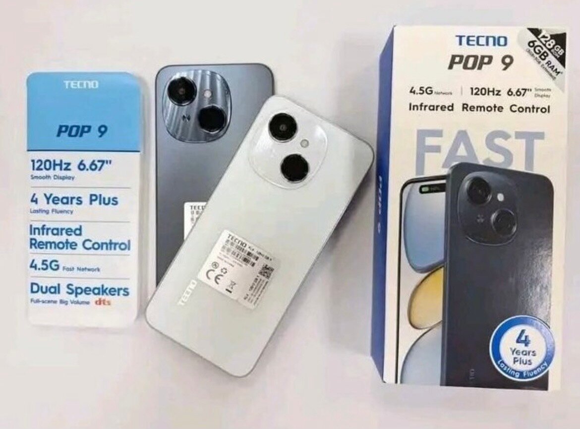 Découvrez le Tecno Pop 9, un smartphone élégant avec écran 120Hz de 6,67 pouces pour une navigation fluide. Bénéficiez de la vitesse 4,5G et du contrôle infrarouge. Parfait pour les amateurs de technologie moderne.