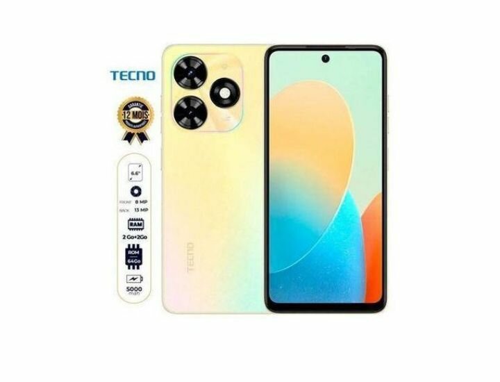 Découvrez le TECNO Smartphone, équipé de 4 Go de RAM et 128 Go de stockage. Profitez d'une expérience fluide et performante au quotidien.
