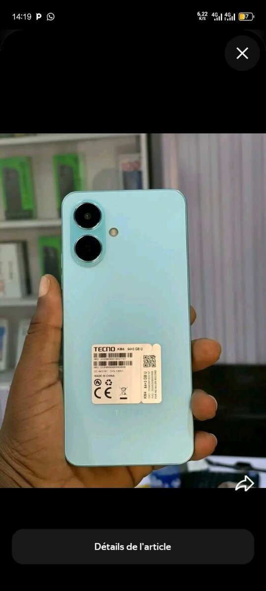 Découvrez le smartphone Tecno, moderne et élégant, parfait pour tous vos besoins quotidiens. Avec sa couleur bleue tendance et son design sophistiqué, c'est le choix idéal pour les amateurs de technologie. Profitez d'une performance fluide et d'une caméra de haute qualité pour capturer vos meilleurs moments. Idéal pour une utilisation quotidienne, des jeux et bien plus encore.
