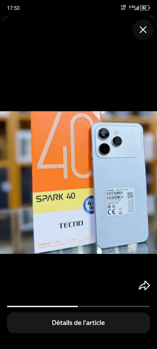 Découvrez le Tecno Spark 40 - un smartphone puissant et élégant. Son design moderne et ses performances exceptionnelles en font un choix idéal pour les utilisateurs exigeants. Capturez chaque moment avec ses appareils photo haute résolution et profitez d'une expérience utilisateur fluide grâce à son processeur rapide. Convient parfaitement pour la navigation, les jeux et bien plus encore. Ne manquez pas l'occasion de posséder cette innovation technologique.