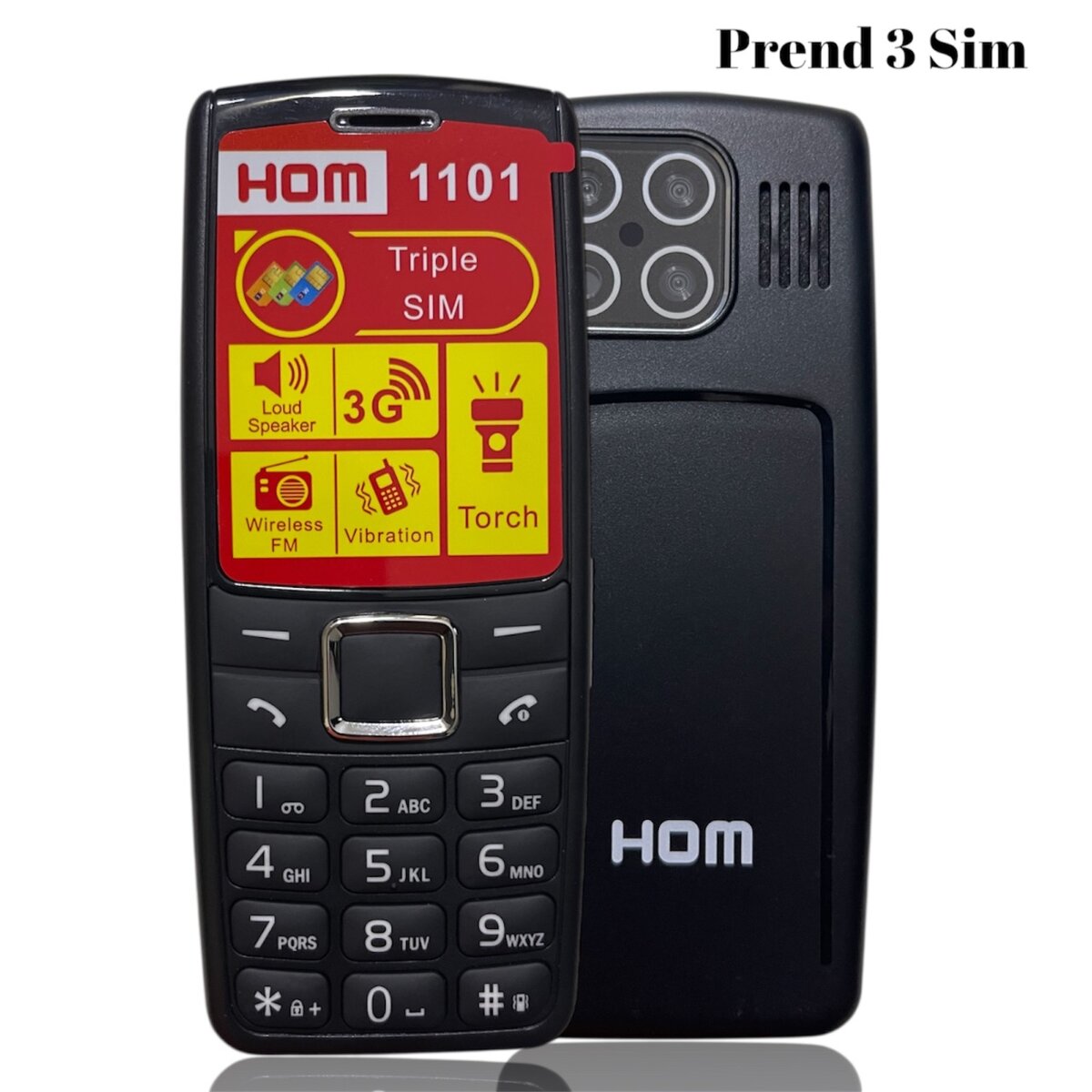 Le téléphone portable à clavier HOM 1101 a une radio FM sans fil, un son élevé,
