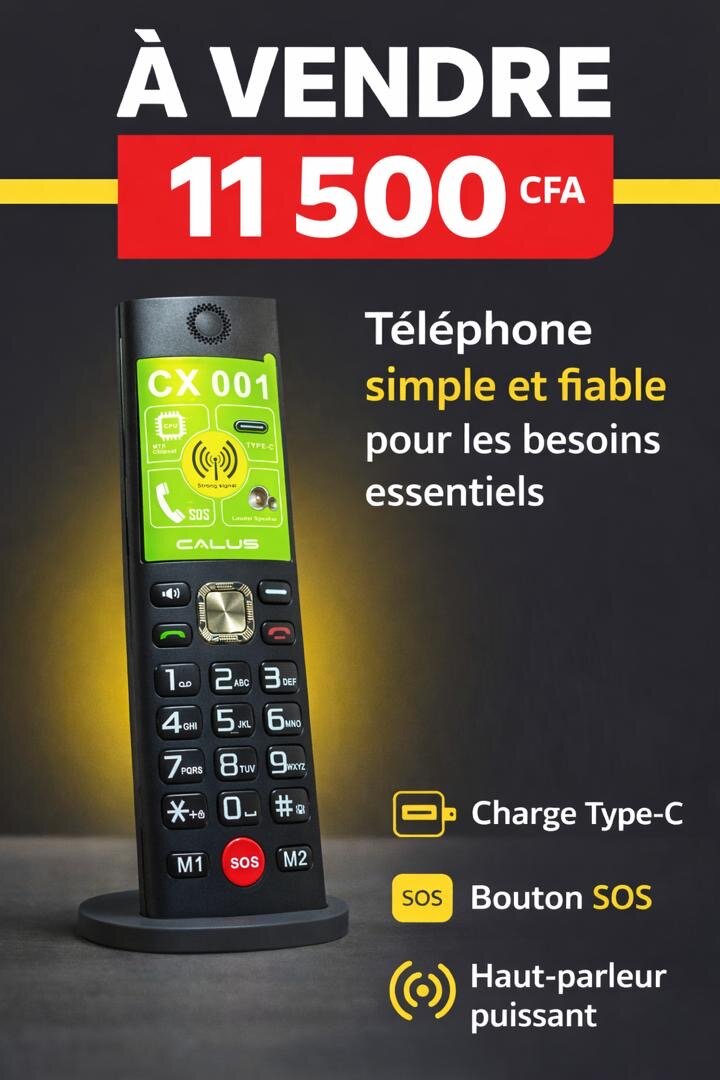 Téléphone simple et fiable CX 001 pour les besoins essentiels. Charge Type-C, bouton SOS et haut-parleur puissant. 11500 CFA.