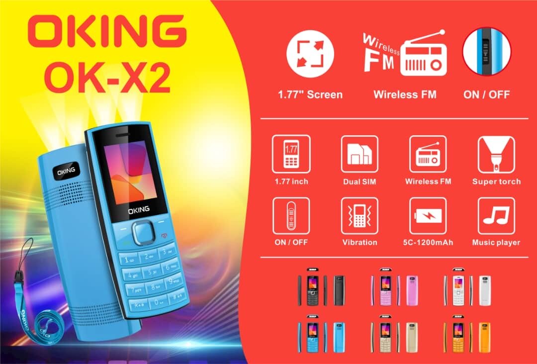 Découvrez le téléphone portable OKING OK-X2 : écran 1,77'', double SIM, radio FM sans fil et musique. Compact et pratique, idéal pour une utilisation quotidienne. Profitez de sa longue autonomie grâce à sa batterie de 1200mAh. Parfait pour ceux qui désirent un mobile simple et fiable avec lampe torche et vibreur intégré.