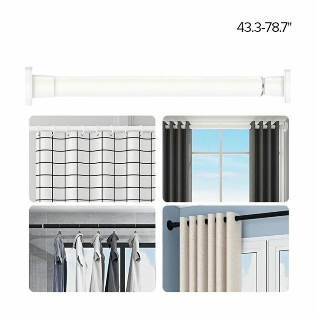 TELESCOPIC ADJUSTABLE TENSION CURTAIN ROD WARDROBE CLOTHES HANGER ROD NO DRILL CURTAIN HANGER POLE 39.4-78.7INCH - WHITE Model Number: ghx3743