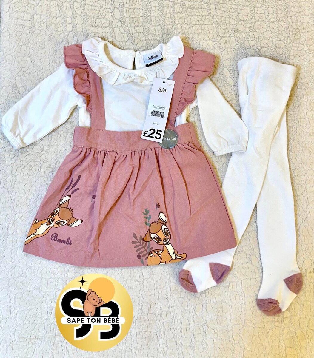 Tenue confortable composée dune salopette , un haut manche longue et une paire de collant . Très classe et agréable pour bébé fille de 6 mois à 3 ans