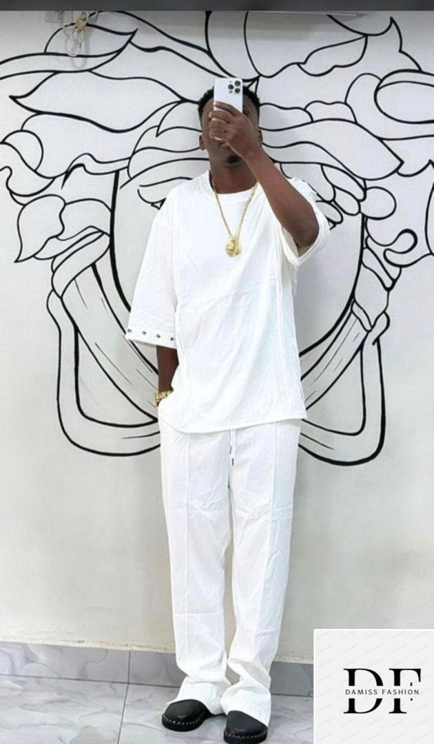 Découvrez cette tenue blanche élégante, idéale pour les occasions chics et décontractées. Confortable et stylée, elle est parfaite pour un look moderne et épuré. Faites sensation avec ce choix vestimentaire minimaliste et sophistiqué.