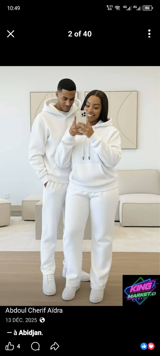 Découvrez notre ensemble de sport blanc, idéal pour un style décontracté et moderne. Parfait pour la maison ou les sorties, il offre confort et élégance. Fabriqué dans un tissu doux et respirant, il est conçu pour vous accompagner dans toutes vos activités du quotidien. Ne manquez pas cette pièce incontournable pour un look harmonieux en couple!