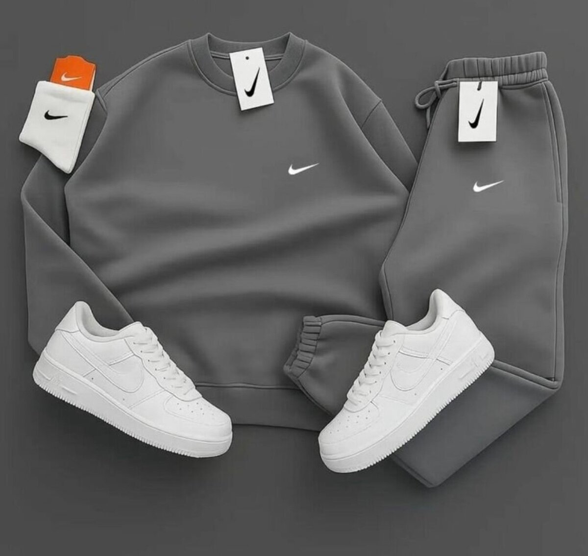 Découvrez notre tenue de sport Nike, alliant style et confort. Parfait pour vos séances de sport ou vos sorties décontractées, cet ensemble comprend un sweat à capuche, un pantalon de jogging et des baskets assorties. Profitez d'une qualité exceptionnelle et d'un design contemporain pour un look sportif et branché.