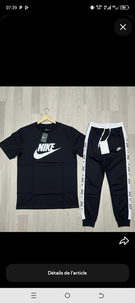 Découvrez cet ensemble de sport Nike pour homme, idéal pour vos séances d'entraînement. Confortable et stylé, il est parfait pour le fitness ou la détente à la maison. La qualité Nike garantit durabilité et performance. Ne manquez pas l'occasion de l'ajouter à votre garde-robe!
