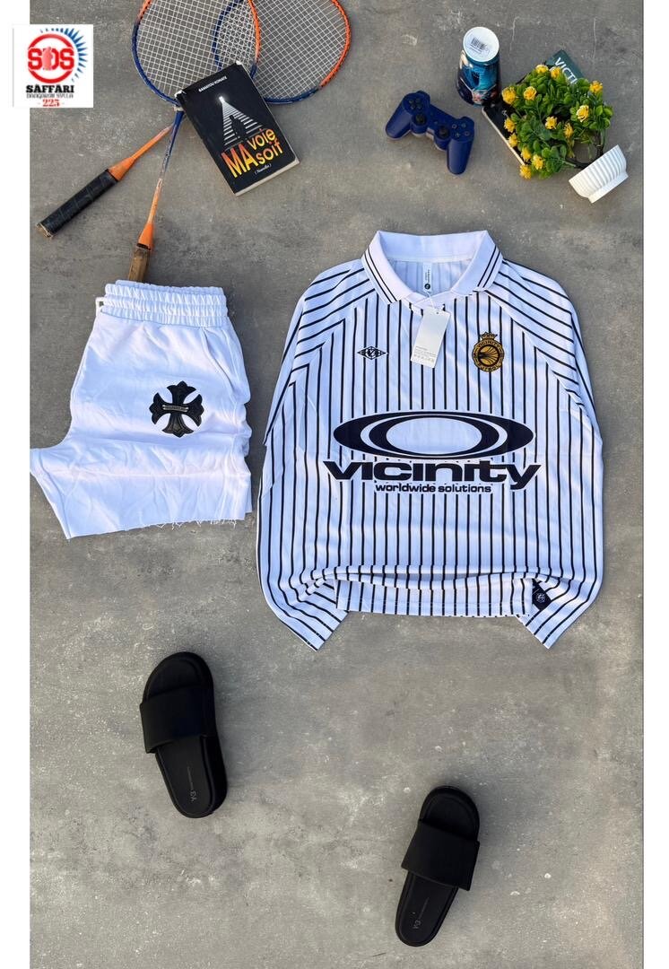 Découvrez la tenue de sport unisexe Vicinity, idéale pour vos entraînements. Confort et style avec un t-shirt à rayures et un short blanc. Parfait pour la salle de sport ou les activités en extérieur. Faites l'expérience d'une liberté de mouvement incomparable. Commandez dès maintenant pour améliorer vos performances !
