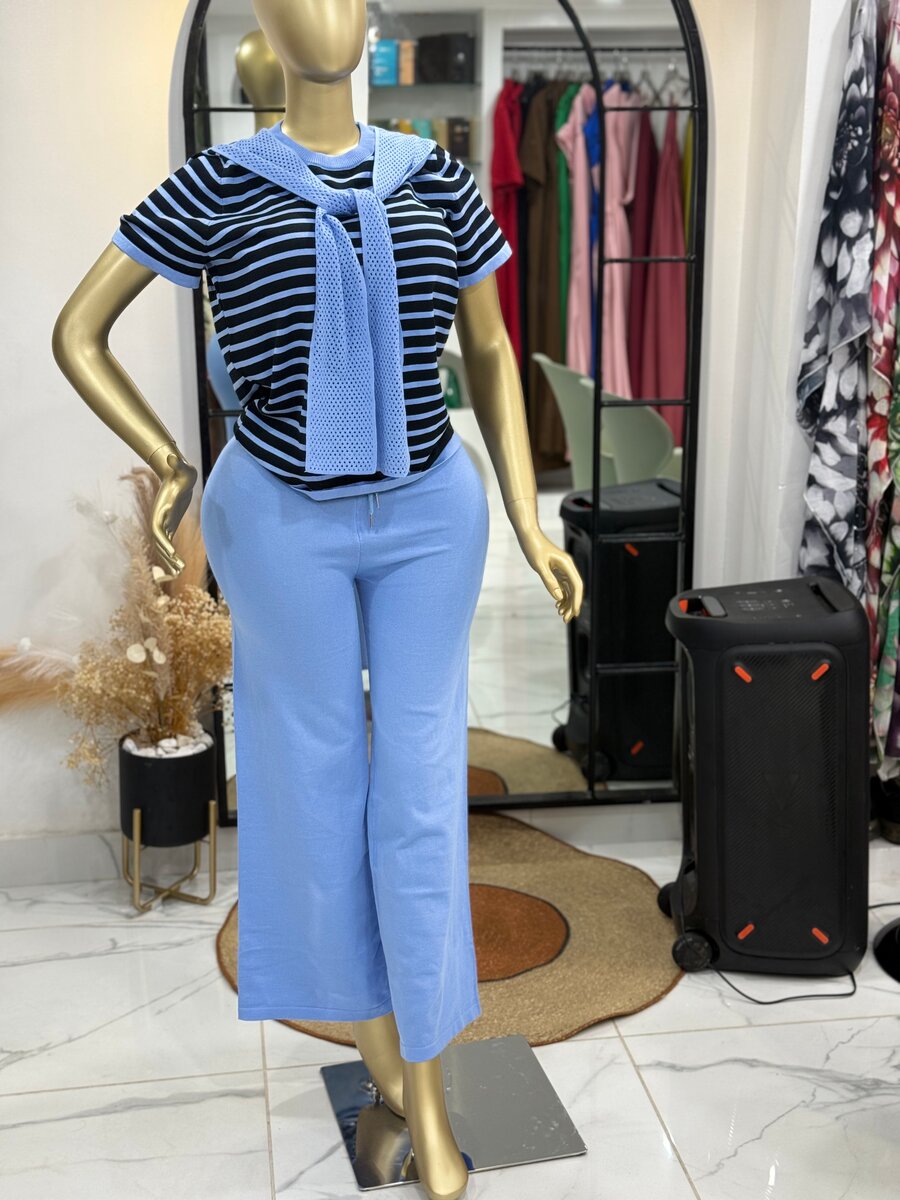 Élégante et confortable, cette tenue décontractée est parfaite pour les sorties et les loisirs. Composée d'un haut à rayures et d'un pantalon ample, elle offre une liberté de mouvement incomparable. Disponible en plusieurs couleurs, c'est le choix idéal pour une allure chic sans effort.