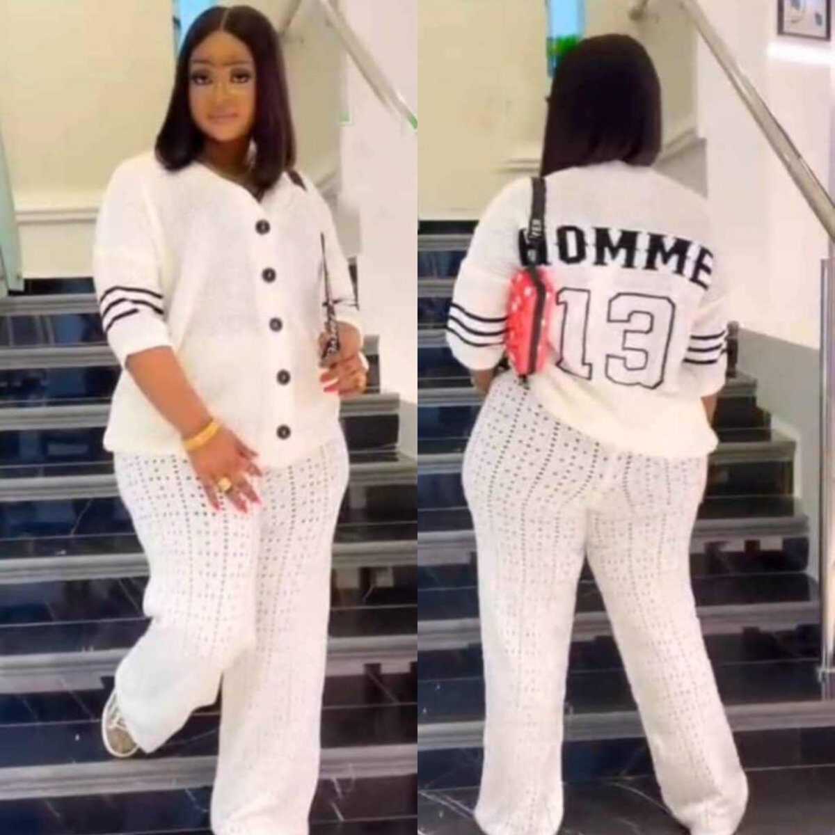 Apportez une touche stylée à votre garde-robe avec cette tenue en tricot blanc. Idéale pour un look casual chic, elle offre confort et élégance. Parfaite pour une sortie entre amis ou une balade en ville, cette tenue se distingue par ses détails uniques et son allure moderne.