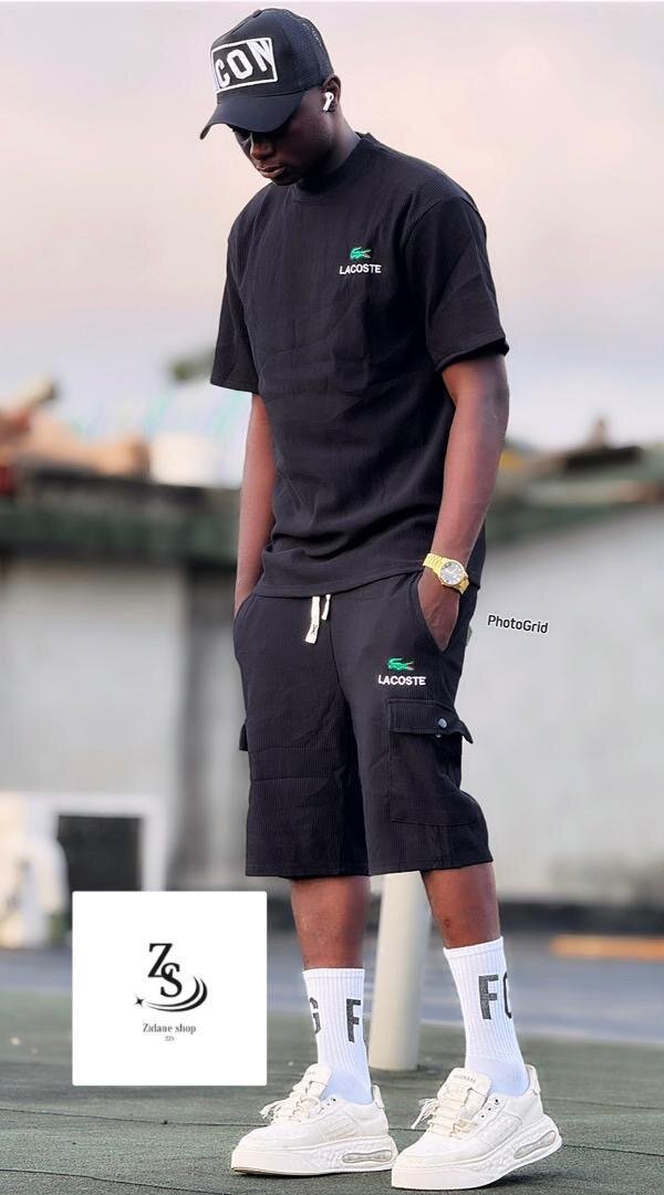 Découvrez notre ensemble décontracté Lacoste composé d'un t-shirt et d'un short cargo. Parfait pour une journée estivale confortable et stylée. Idéal pour les amateurs de mode actuelle.