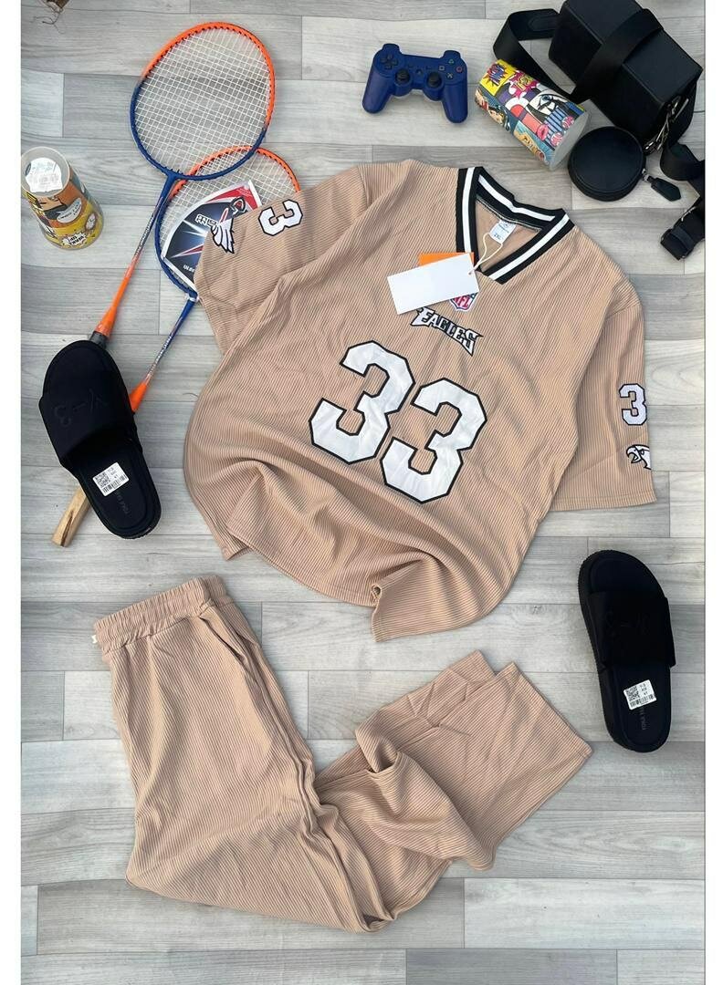 Découvrez notre ensemble décontracté Eagles, parfait pour les moments de détente. Composé d'un t-shirt stylé à manches courtes et d'un pantalon confortable en tissu doux, c'est un choix idéal pour la maison ou les sorties sportives. Affichez un look cool avec le numéro 33 emblématique des Eagles. Un must-have pour les amateurs de confort et de style décontracté!
