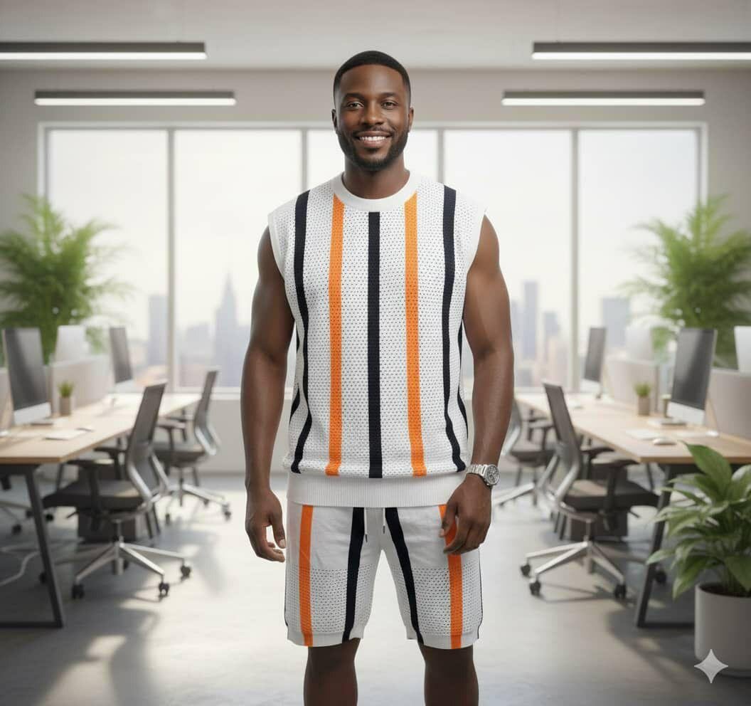 Profitez de l'été avec cet ensemble confortable et tendance à rayures. Idéal pour les journées décontractées, ce modèle sans manches offre style et légèreté. Parfait pour une escapade urbaine ou une journée à la plage.