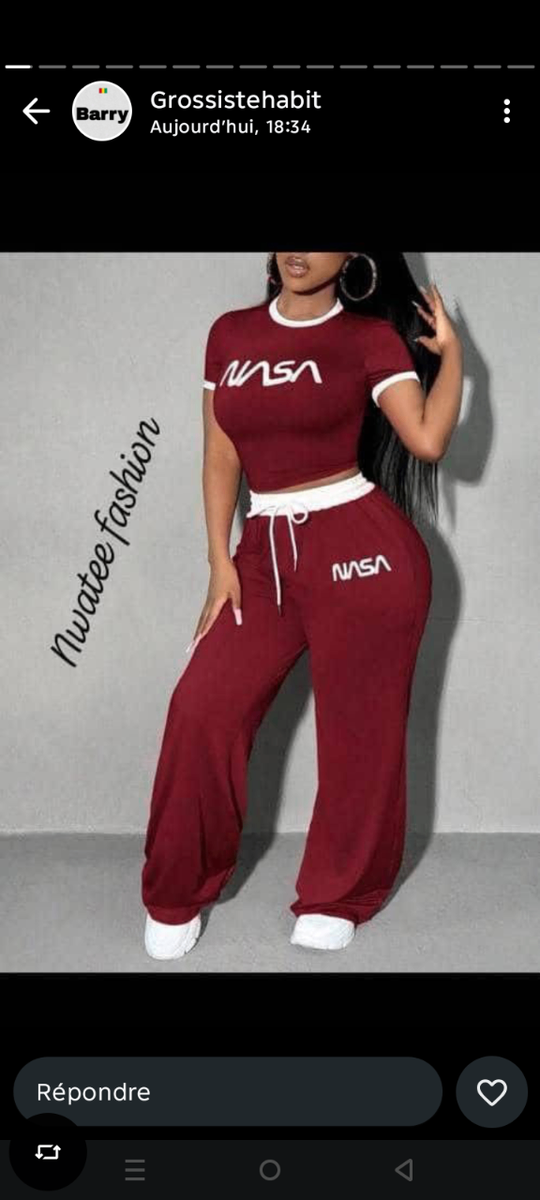 Élégante ensemble deux pièces pour femme avec logo distinctif. Parfait pour un style décontracté et tendance, idéal pour les sorties ou détente à la maison. Matière confortable, design moderne.