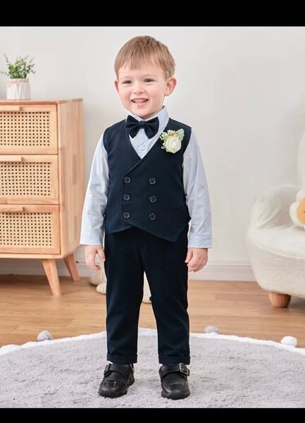 Transformez votre petit en gentleman avec cet ensemble élégant pour bébé garçon. Inclut un gilet bordeaux, une chemise et un pantalon assorti, idéale pour des occasions spéciales. Confort et style garantis, parfait pour un look impeccable à tout moment.