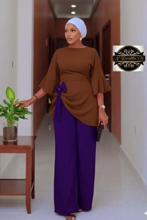 Adoptez un style chic avec cette magnifique tenue deux pièces composée d'un top asymétrique à manches longues et d'un pantalon ample. Idéale pour un look raffiné, elle s'accorde parfaitement pour les événements formels ou les sorties élégantes. Disponible en plusieurs couleurs vibrantes pour correspondre à votre humeur.