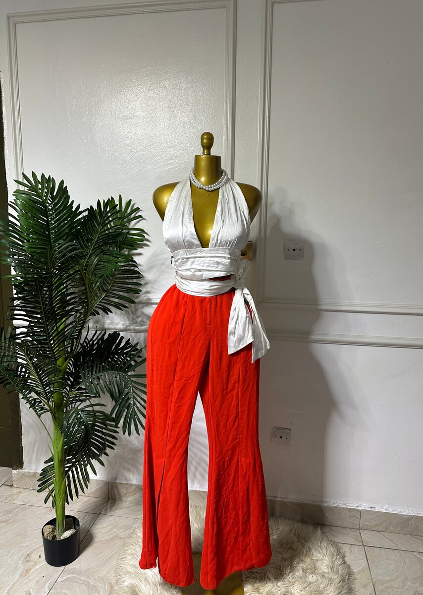 Ensemble chic et moderne comprenant un top bustier et un pantalon ample. Idéal pour les sorties en ville ou les soirées élégantes. Confectionné avec des matériaux confortables et tendances. Disponible en plusieurs coloris attrayants. Parfait pour exprimer votre style unique.