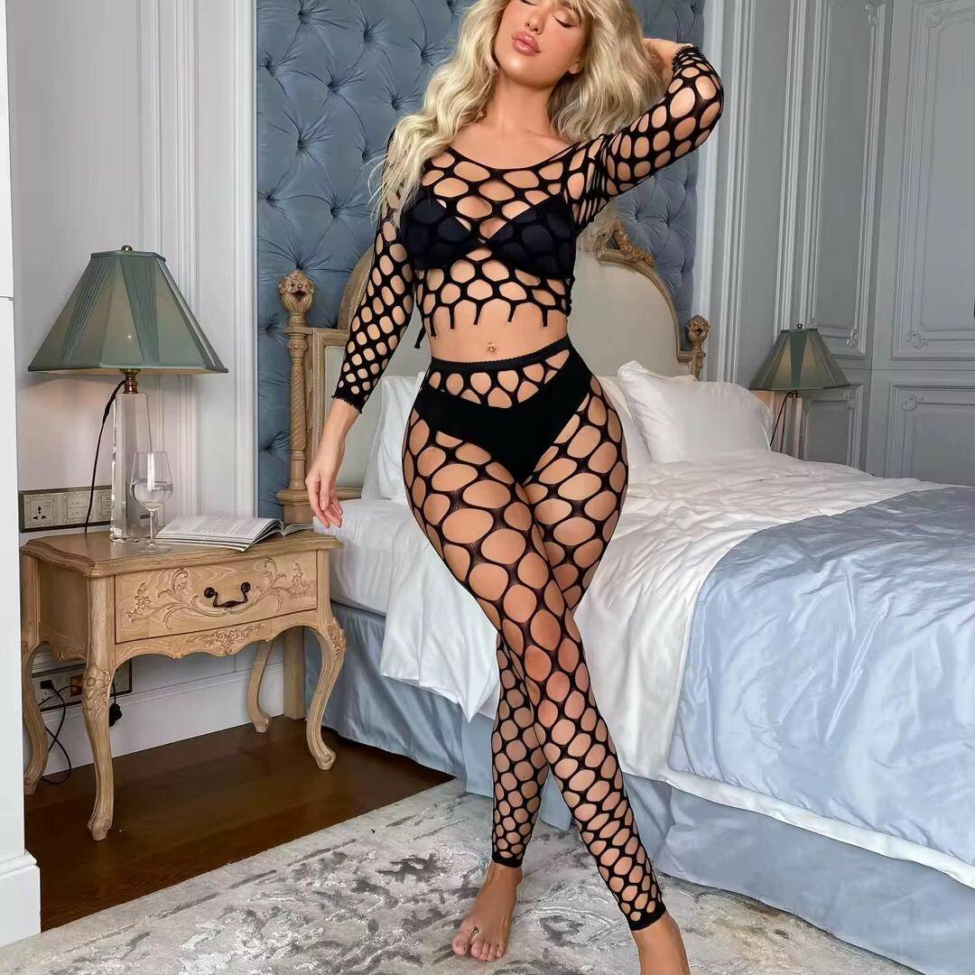Découvrez notre ensemble en résille noir, idéal pour une soirée audacieuse. Fabriqué avec des matériaux de haute qualité, il épouse parfaitement les formes pour un look irrésistible. Parfait pour des occasions spéciales ou pour une soirée à la maison. Soyez le centre de l'attention avec ce design unique et glamour.