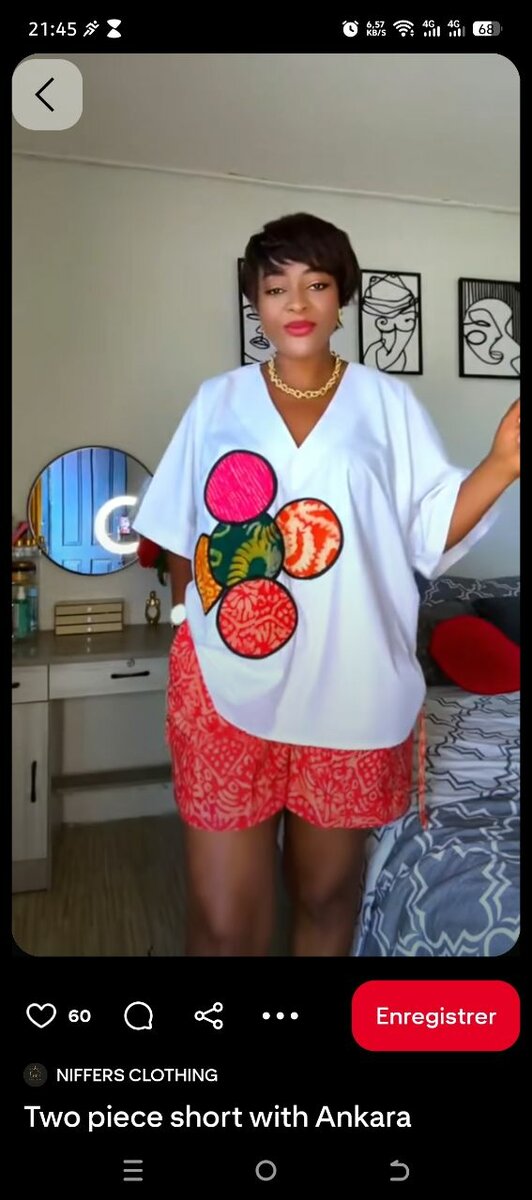 Ensemble élégant de deux pièces en tissu Ankara pour femme, comprenant un haut ample et un short assorti. Idéal pour un look décontracté et coloré, parfait pour l'été ou les sorties décontractées. Matière légère et confortable pour un style unique et tendance.
