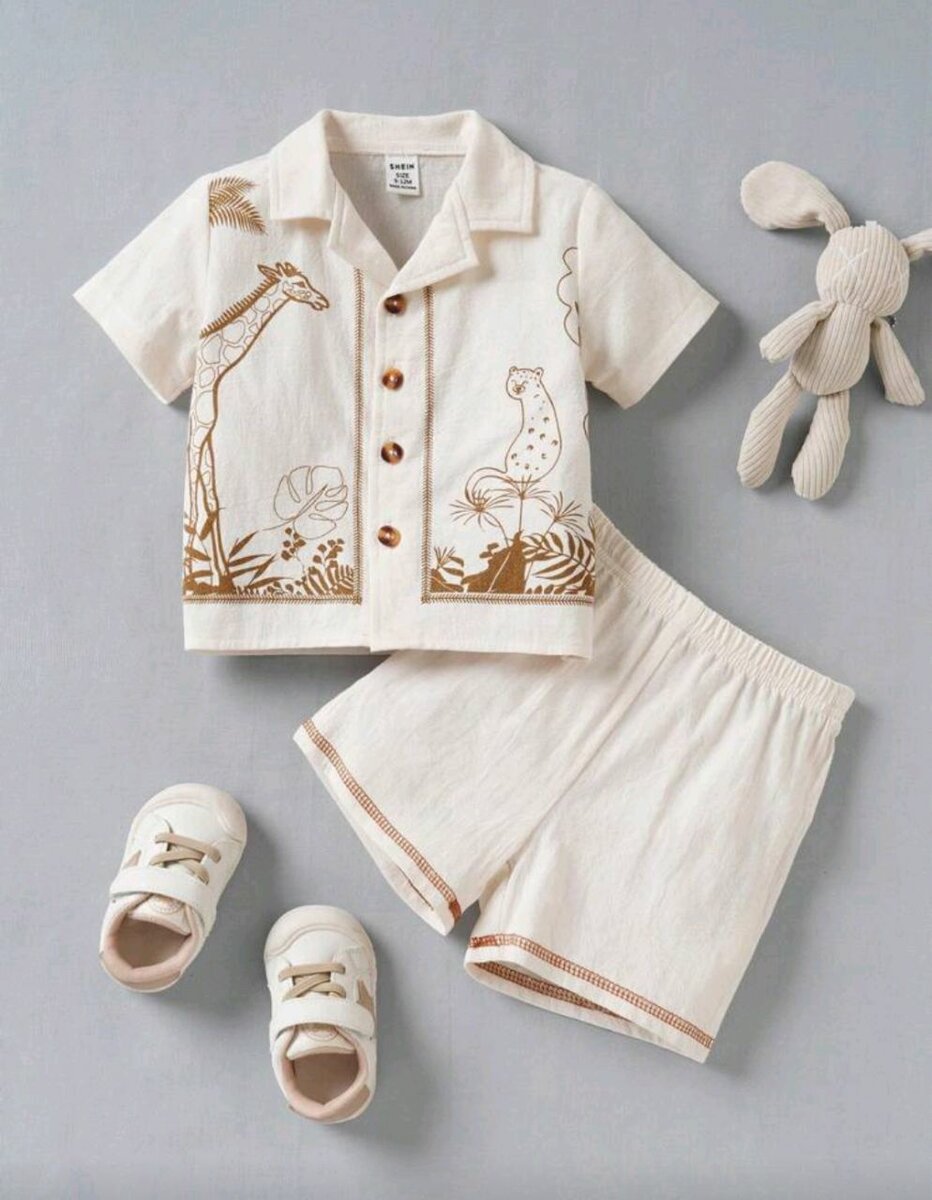 Parfaite pour l'été, cette tenue safari en coton doux est idéale pour votre petit aventurier. Avec imprimé girafe et léopard, elle promet confort et style. Comprend chemise et short assorti, parfaits pour les journées ensoleillées. Le cadeau idéal!