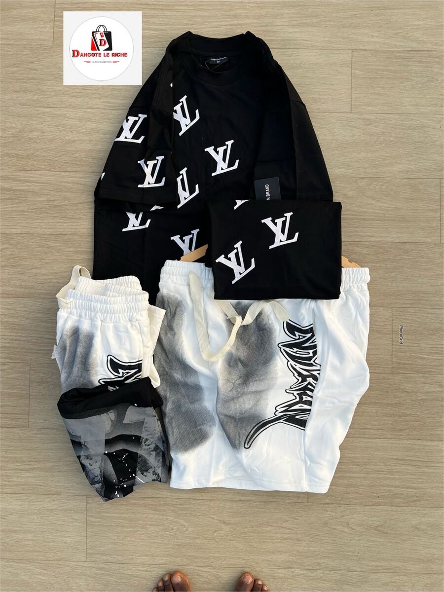 Transformez votre look avec cette tenue streetwear tendance pour homme. Comprend un t-shirt à logo et shorts confortables, parfaits pour un style urbain audacieux. Idéal pour le quotidien ou un look décontracté. Style et confort garantis.