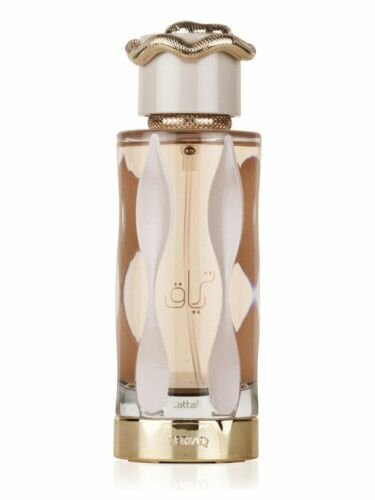 Teriaq by Lattafa Perfumes is a fragrance for women and men. This is a new fragrance. Teriaq was launched in 2024. The nose behind this fragrance is Quentin Bisch. Top notes are Caramel, Bitter Almond, Apricot and Pink Pepper; middle notes are Honey, Rhubarb, White Flowers and Rose; base notes are Leather, Vanilla, Musk, Vetiver and Labdanum.