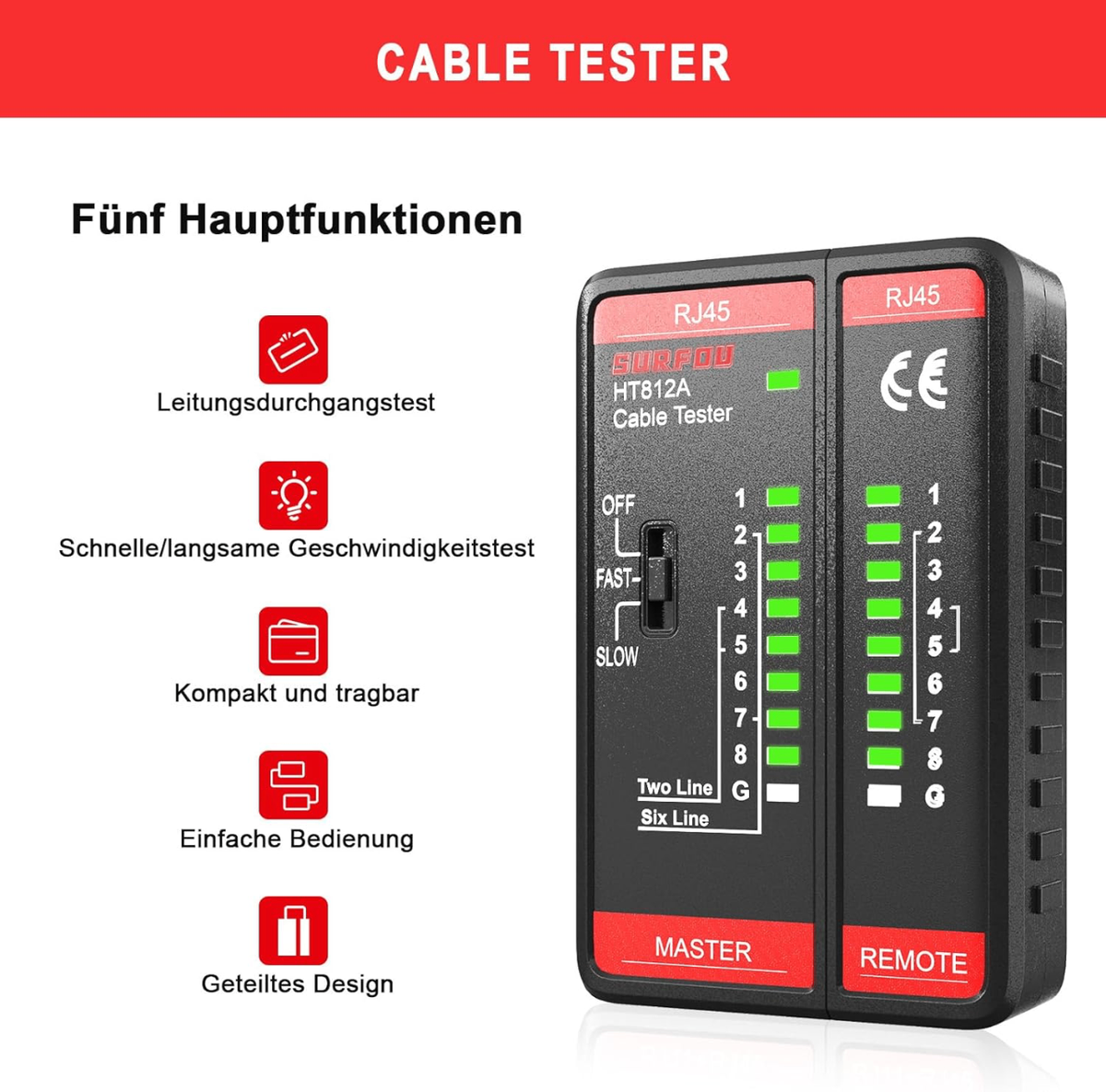 SURFOU Testeur De Cable Rj45 Prise, Ethernet Cat Cat6 Cat6a Cat7 Câble Réseau Testeurs, Network Internet Câbles Reseau Tools Tester, Idéal Pour Diagnostiquer Rapidement Les Problèmes