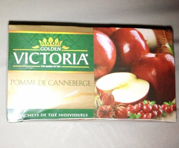 Boîte de 25 sachets de thé Golden Victoria, goût pomme et canneberge. Mélange fruité, à consommer à tout moment.