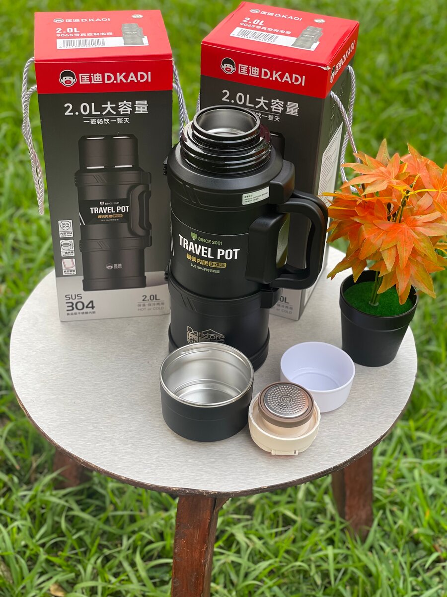 Découvrez notre thermos de voyage de 2 litres en acier inoxydable 304, idéal pour maintenir vos boissons chaudes ou froides. Parfait pour les déplacements, ce thermos assure une performance thermique exceptionnelle et une durabilité à toute épreuve. Facile à transporter et à nettoyer, c'est un indispensable pour les aventuriers et les amateurs de café ou thé. Ne partez jamais sans lui!