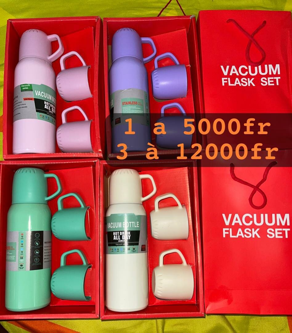 Gardez vos boissons chaudes ou froides avec style ! Ce thermos de 500ml en acier inoxydable est idéal pour les déplacements. Livré avec des tasses assorties, c'est un choix parfait pour les pique-niques, le bureau ou les voyages. Étanche et facile à transporter.