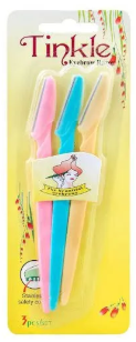 The Tinkle Eyebrow Razor is designed to keep your eyebrows perfectly groomed. This pack of 3 razors offers easy and precise eyebrow shaping, as well as the removal of unwanted facial hair. The safety cover ensures safe storage and travel. Ideal for makeup accessories and personal grooming, these razors provide a quick and painless way to maintain a polished look. Whether at home or on the go, these razors are a convenient tool for achieving well-groomed eyebrows and a smooth facial appearance.