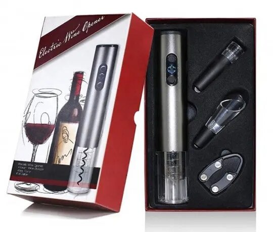 Ensemble d’ouvre-vin électrique 4 pièces/ensemble (coupe-feuille + bouchon de vin + verseur de vin + ouvre-vin électrique) affichage de lumière LED Certification CE