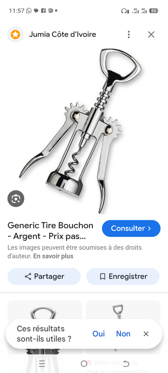 Tire-bouchon en métal argenté, idéal pour ouvrir vos bouteilles de vin. Conception robuste et facile à utiliser. Parfait pour les amateurs de vin.