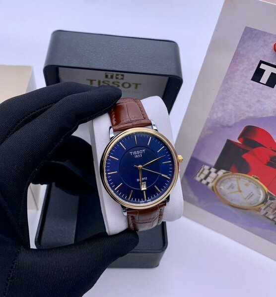 Montre Tissot neuve, bleu foncé, bracelet cuir marron. Style classique-chic en parfait état, livrée en boîte d’origine.