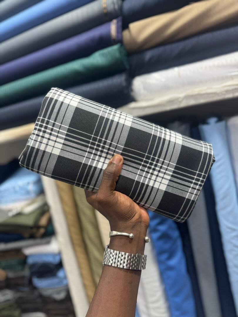 Tissu de qualité en coton à motif carreaux pour la confection de vêtements et accessoires. Résistant et confortable, idéal pour créer des chemises, robes, et accessoires de mode.