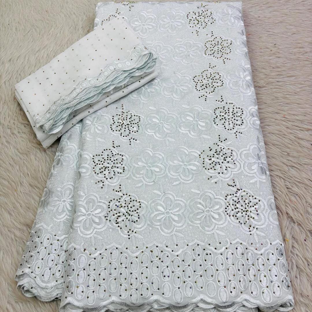 Tissu dentelle brodé blanc