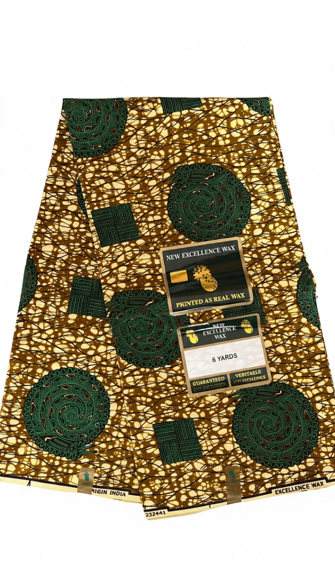 Découvrez ce magnifique tissu Wax africain authentique de 6 yards. Idéal pour créer des vêtements, accessoires ou décoration intérieure, ce tissu offre un motif vibrant et unique qui attire le regard.