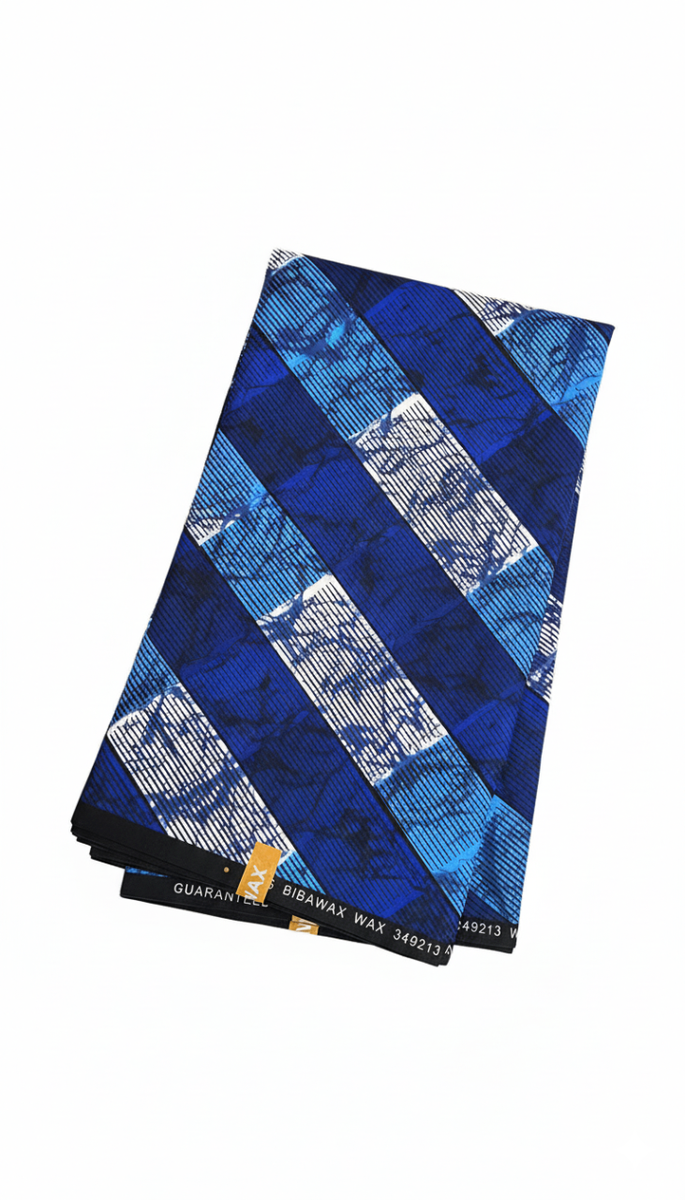 Découvrez ce tissu Wax africain aux motifs géométriques bleus. Parfait pour la confection de vêtements, accessoires ou décoration intérieure. Sa qualité garantie offre durabilité et éclat des couleurs. Idéal pour créer des pièces uniques et stylées.
