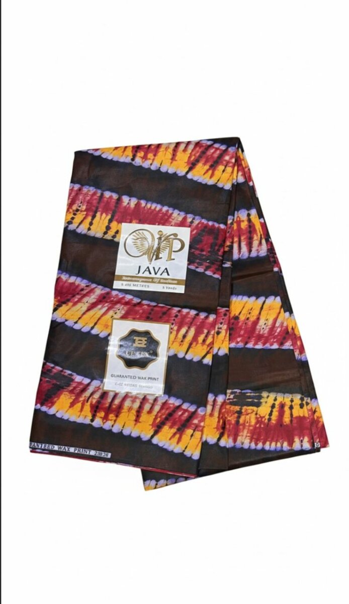 Découvrez ce magnifique tissu Wax Java aux motifs vibrants et multicolores.