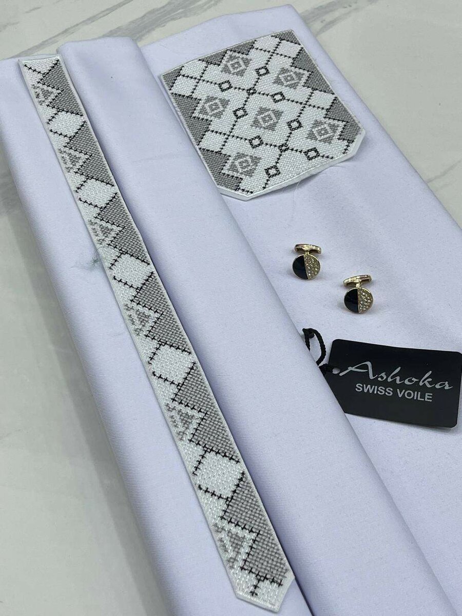 Tissus hommes Avec Brodérie Coton glacé 3 mètres de double largeur