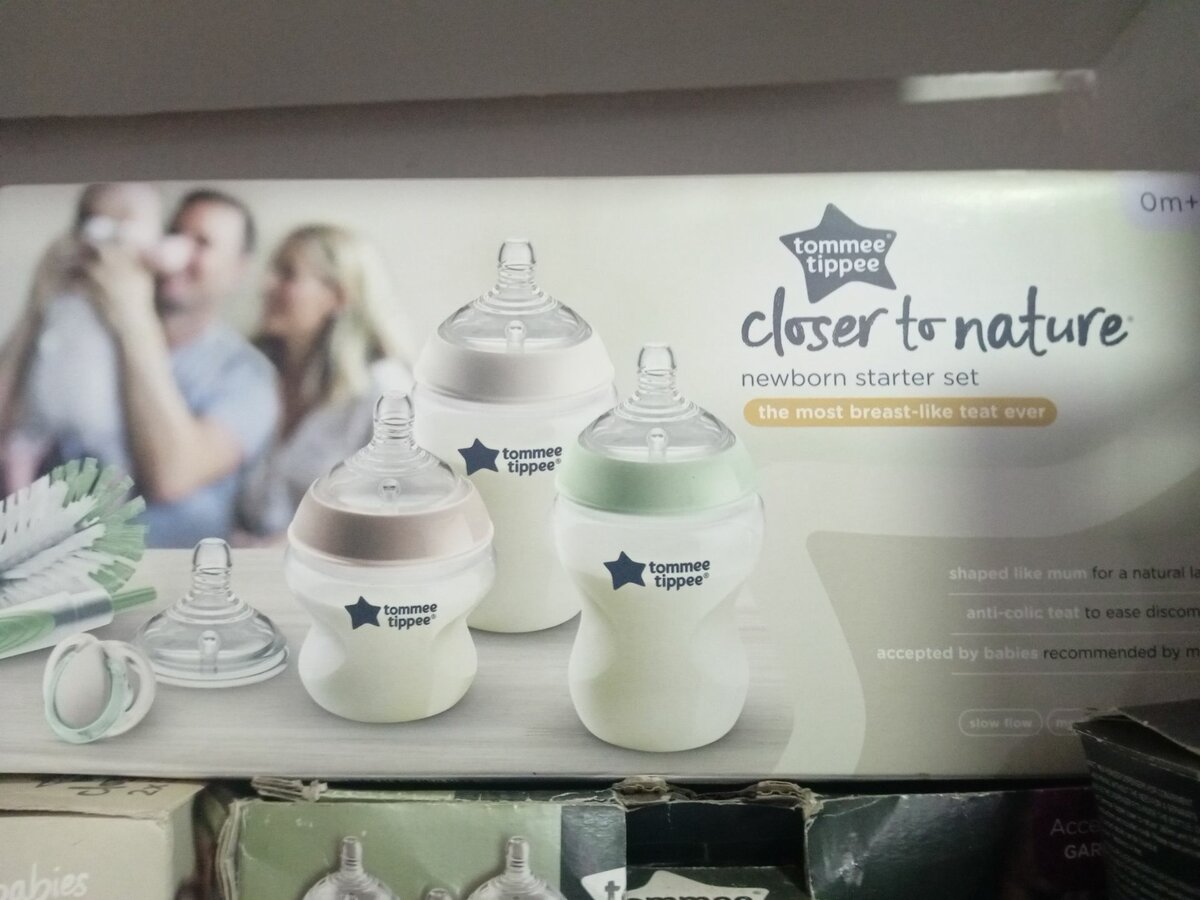 Tommee Tippee closer to nature feeding bottle. Suitable for newborns. Set contains 4 feeding bottles, pacifier, cleaning brush and extra teet