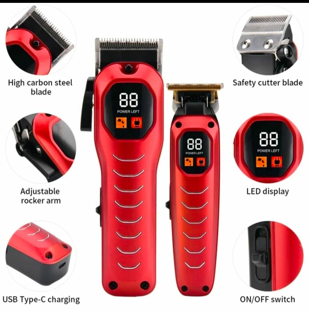 Tondeuse électrique pour hommes avec lame en acier inoxydable, affichage LED, recharge USB Type-C. Idéale pour les coupes précises, facile à utiliser et à entretenir.