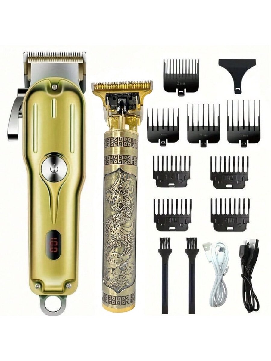 Tondeuse électrique avec design dragon doré. Parfaite pour des coupes précises et stylées. Livrée avec plusieurs sabots, brosse de nettoyage et câble USB. Idéale pour un usage professionnel et à domicile. Étanche et facile à utiliser.