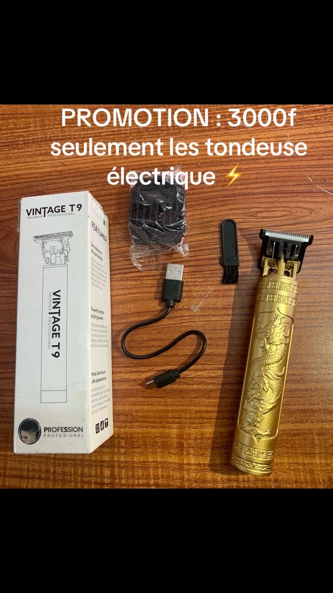 Découvrez la tondeuse électrique Vintage T9, parfaite pour des coupes précises et stylées. Son design doré élégant s'intégrera parfaitement dans votre salle de bain. Facile à utiliser, elle est idéale pour les hommes recherchant une apparence soignée. Inclut câble USB pour un rechargement rapide. Faites l'expérience d'une coupe professionnelle chez vous !