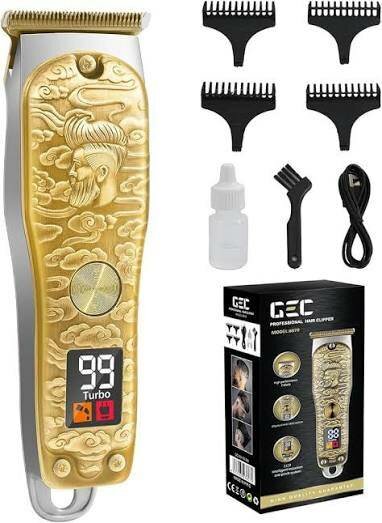 Transformez votre routine de coiffure avec cette tondeuse professionnelle à motifs dorés. Idéale pour les barbiers et particuliers, elle offre une performance précise avec un écran d'affichage numérique. Parfaite pour tailler et sculpter barbes et cheveux.